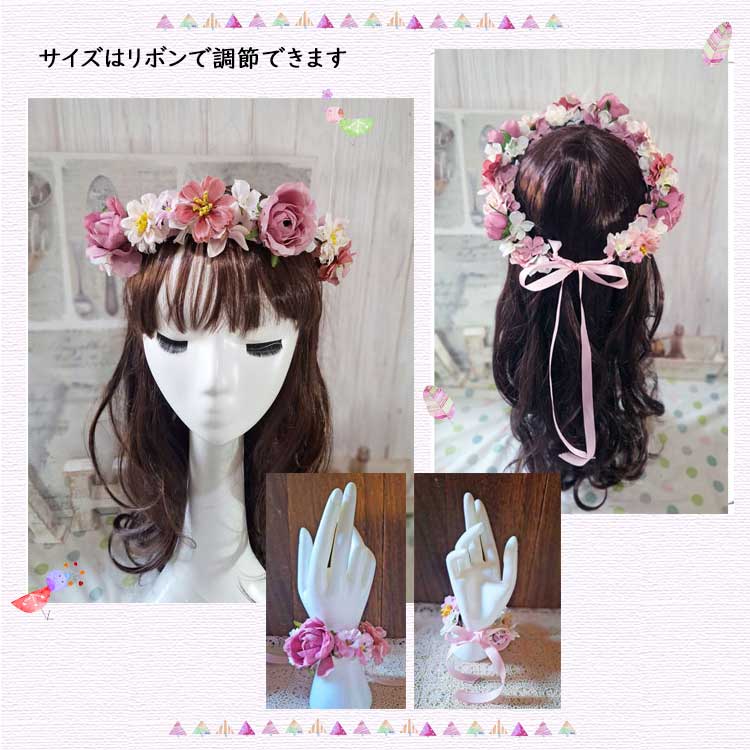 ピンクの色合いでスモールフラワーをあつめた可愛らしいフラワーアクセサリーです