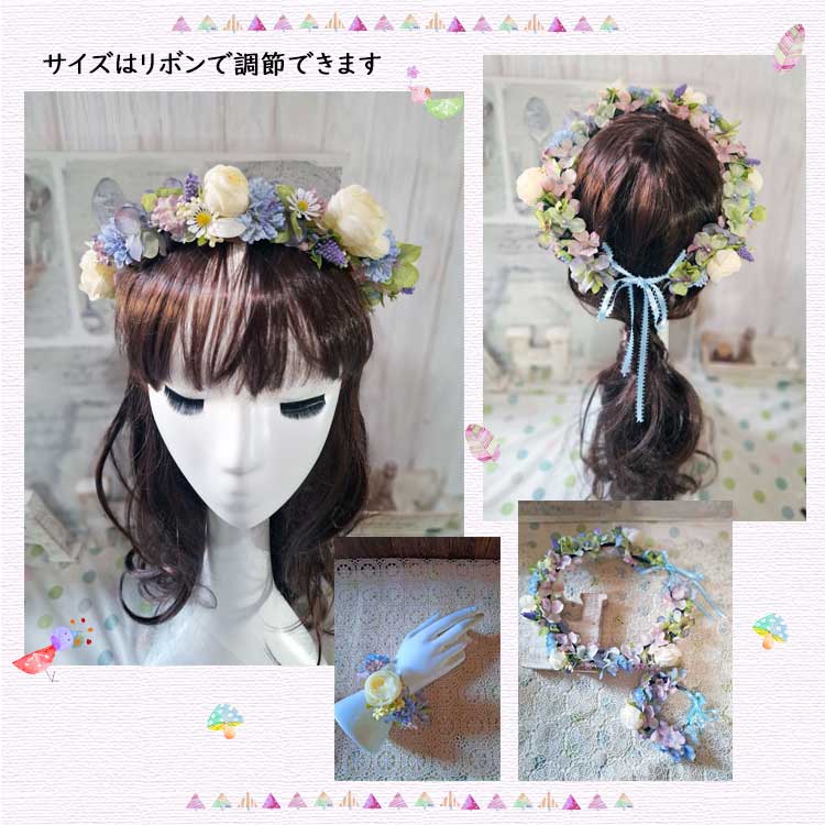 ブルーの色合いでスモールフラワーをあつめた可愛らしいフラワーアクセサリーです
