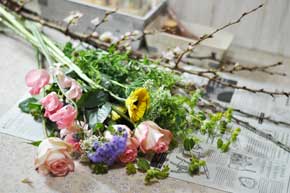 花材 桜 ブプレリウム ガーベラ バラ アゲラタム ソリダコ スイートピー ホワイトレースフラワー |