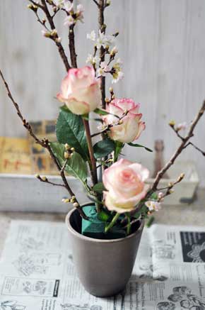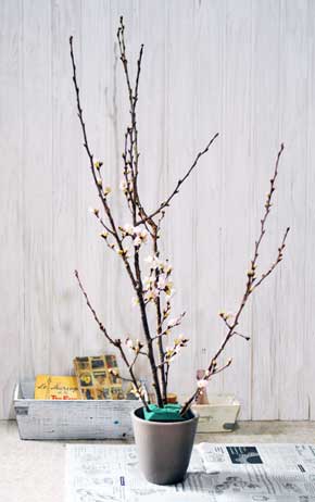 枝があると、花はそんなにたくさんなくても大きいアレンジメントを作ることができます。梅、桃、桜、ハナミズキ、ロウバイ、コデマリなど、なんでもOKですのでどんどんアレンジにとりいれましょう(^^)/ |