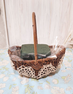 吸水スポンジをバスケットにセットします セロファンで防水しましょう