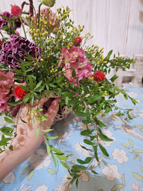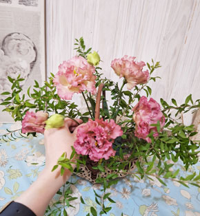 トルコギキョウをいれます まるいイメージで間隔をあけて入れます