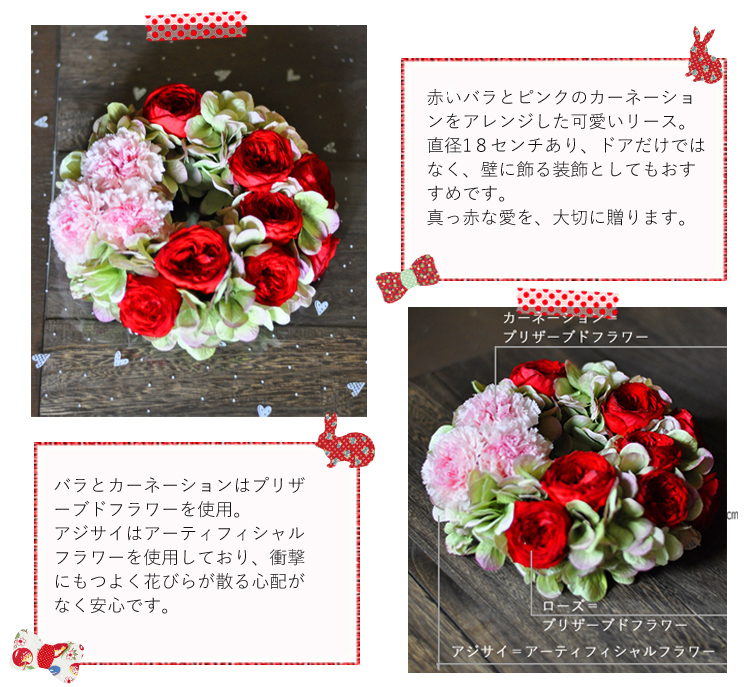 真っ赤なバラのプリザーブドフラワーリース