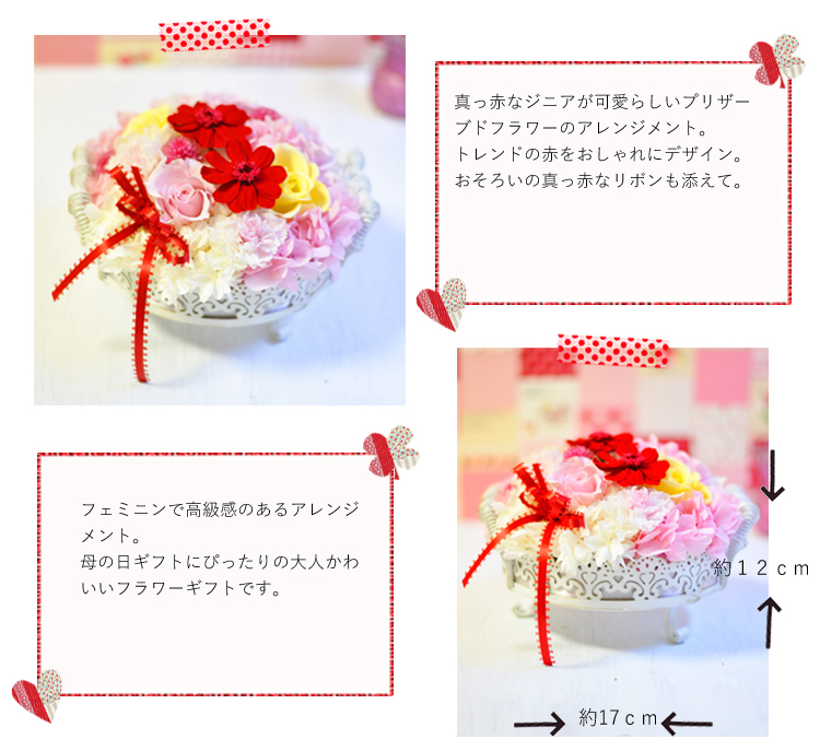 赤いジニアのプリザーブドフラワーアレンジメント