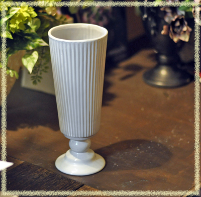 今回はこのアンティークグレイの花器にマイクロローズなどのちいさな花をたくさん使ったアレンジを製作します。