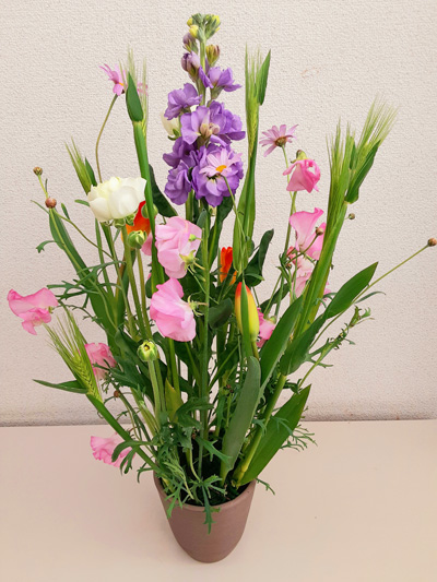 レッスンで製作した生花のアレンジメントです。