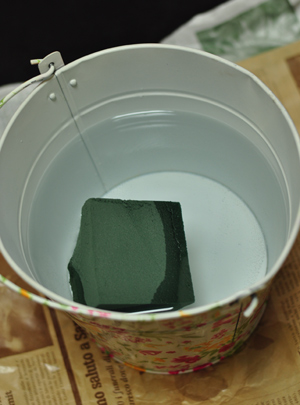 器に水を吸わせたスポンジをセットします