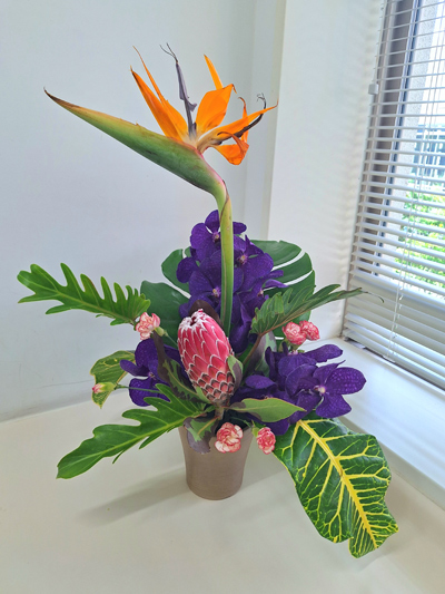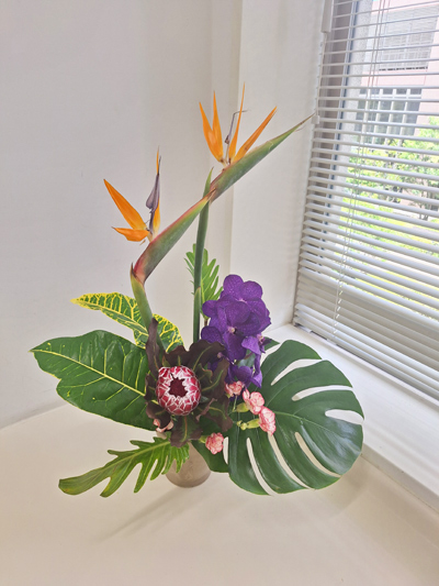 個性的でそれぞれに主張の強い花材を合わせる場合は、それぞれの花材を生かすアレンジをする必要があります。