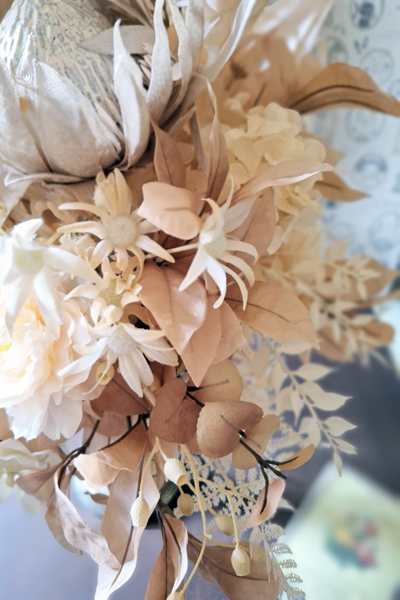 モダンスタイルの中に上品さを感じるベージュカラーのアーティフィシャルフラワーアレンジメント。