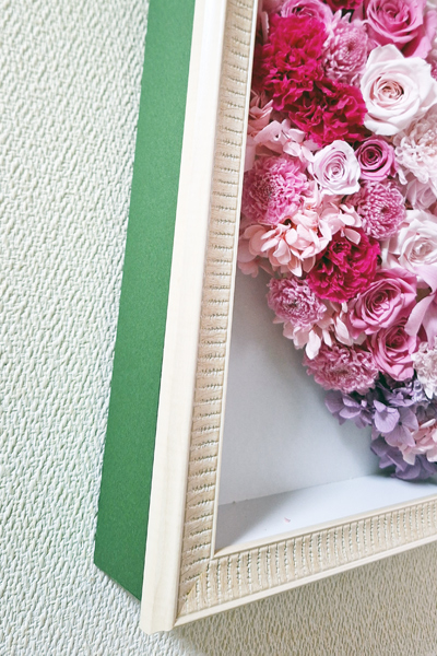 プリザーブドフラワーの可愛い小花を使ったハートシェイプアレンジメント。