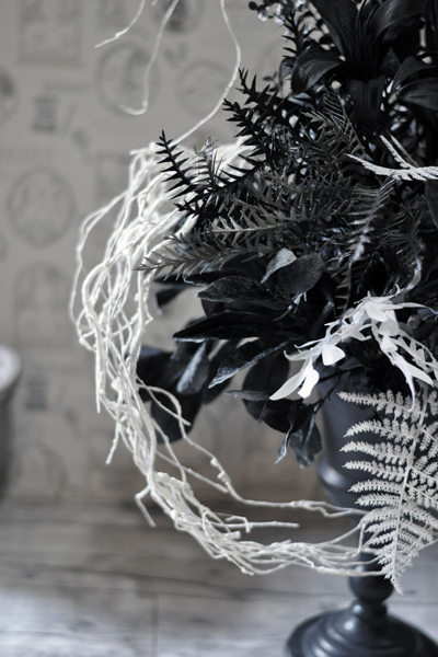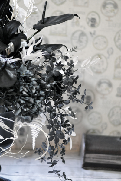 黒白グレイのモノトーンカラーだけで仕上げた上品なアーティフィシャルフラワーアレンジメント