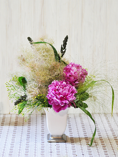 2025.6 スモークツリーと芍薬のアレンジメント