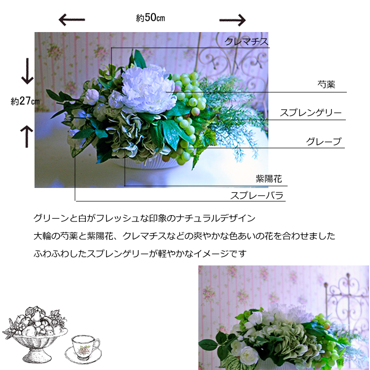 | 商品の色は掲載写真と多少異なる場合がございます。 生花ではありませんので水やりの必要はありません。高温多湿・直射日光を避けて飾ってください。 |
