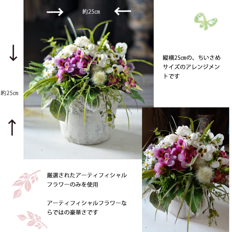 | 商品の色は掲載写真と多少異なる場合がございます。 生花ではありませんので水やりの必要はありません。高温多湿・直射日光を避けて飾ってください。 |