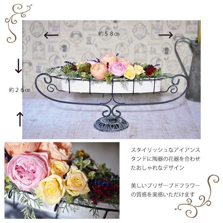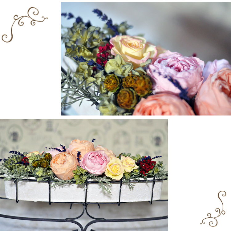 | 商品の色は掲載写真と多少異なる場合がございます。 生花ではありませんので水やりの必要はありません。 高温多湿・直射日光を避けて飾ってください。 ※花材は仕入れの状況により変わる場合があります。 |