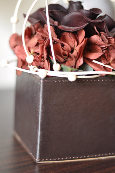 レザー風のボックスにブラウンのローズをアレンジしました。シックでシンプルなデザインなので男性の方への贈り物にも最適です。