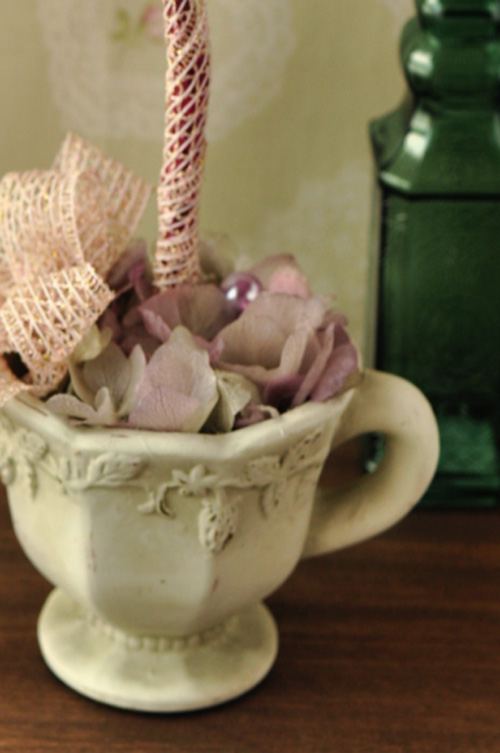 花器は素焼き陶器のアンティーク風カップでかわいらしく☆