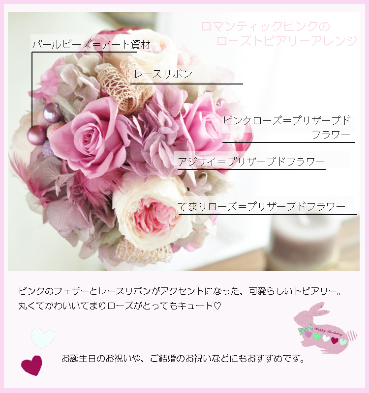 ※プリザーブドフラワーやアートフラワーの取扱い説明書を同梱しています