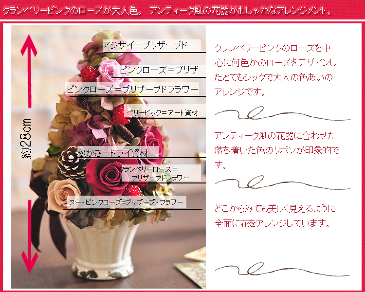 ※プリザーブドフラワーやアートフラワーの取扱い説明書を同梱しています