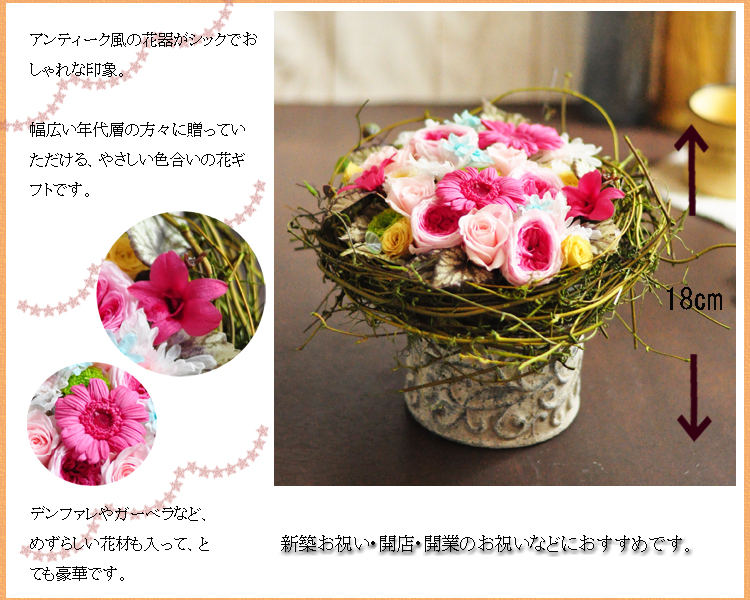 | 商品の色は掲載写真と多少異なる場合がございます。 生花ではありませんので水やりの必要はありません。高温多湿・直射日光を避けて飾ってください。 |