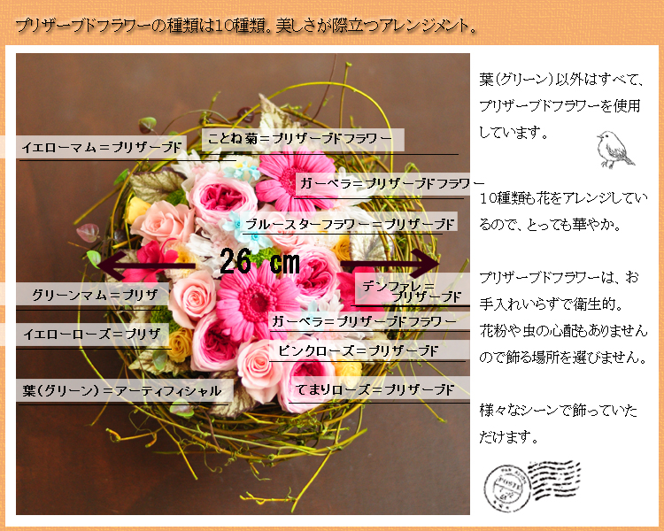 ※プリザーブドフラワーやアートフラワーの取扱い説明書を同梱しています