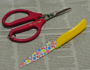まずは、いつものように花ハサミとスポンジを切るナイフです。 |