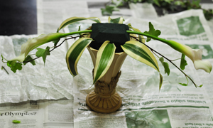 すこしカーブをつけたカラーを左右に均等に挿します。 アイビーより少し短いぐらいの長さです。 |
