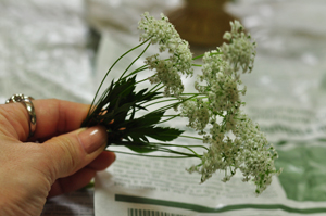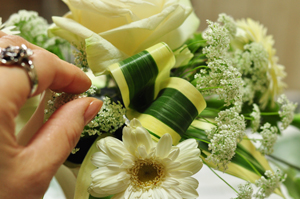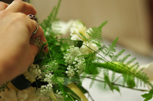 レースフラワーは子房にわけて、花と花の間を埋めるように挿していきます。
