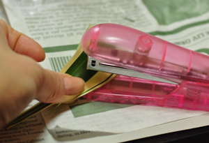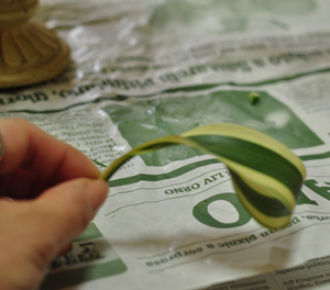 サンデリアーニの葉はホッチキスを使って輪にします。 |