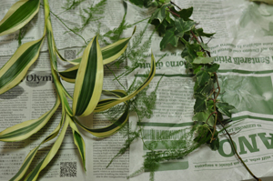 グリーンは 左から、サンデリアーニ 1本 アスパラベラ 1本 アイビー 3本 |