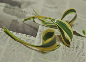 つづいて、サンデリアーニの葉を1枚ずつにわけて、 |