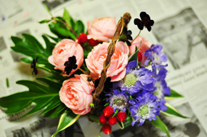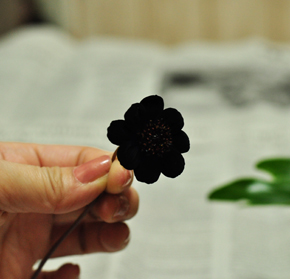 チョコレート色が、淡い花の中でいいアクセントになります。 この花が入るだけで秋らしいアレンジになりますので、ぜひ使ってみてください。 |