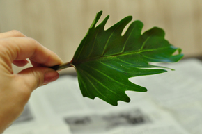 まず、クッカバラでカバーしていきます。 このような個性的な葉っぱは、見せて使わないともったいないので、しっかり見せながらカバーグリーンとしても使います。 |