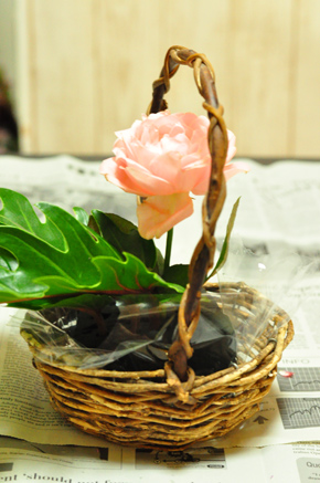 花器は持ち手付きのバスケットを使いました。