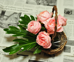 | とくに、花用のバスケットでなくても大丈夫です 何かがはいっていたカゴなどをとっておいたものでも、雑貨屋さんで置いているようなカゴでも◎ 今日は持ち手のついたかわいい小さめのバスケットを使いました。ナチュラルなカゴにアレンジする場合は花をミックスしてアレンジするよりも、ある程度グルーピングしたほうがよりナチュラル感がUpします☆ |
