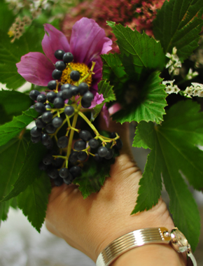 ビバーナムの実です(^^) 実のものが入るととてもナチュラル感が出ますので、ぜひなにか、実のものを入れてみてください。 コスモスの間に入れていきます3か所ぐらい。 |