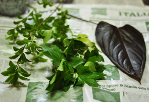 グリーンは ピットスポルム 1本 ベビーハンズ 2本 アンスリウムの葉 1枚 |