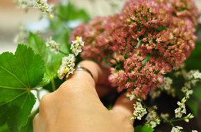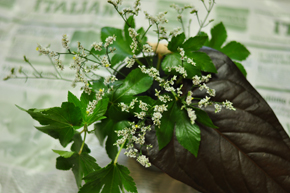 ベビーハンズという名前の葉っぱです。 赤ちゃんの手にみたいですね。 カバーグリーンとしてランダムに挿していきます。 |