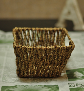 ナチュラル感のある、バスケット花器を使いました。 あまり高さのない低めのものであれば何でもOKです。