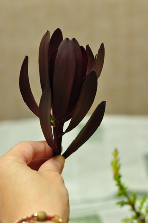 こちらはリューカデンドロ。 こちらも深い色みで、シックなアレンジによく使います。