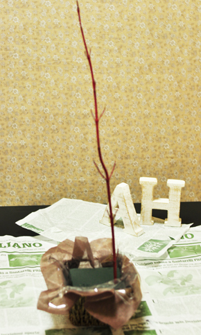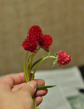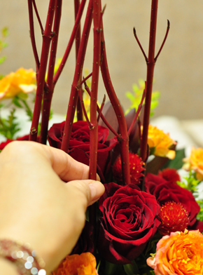 全部挿せたら、最後に一本残しておいたサンゴミズキを挿して、