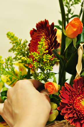 花が窮屈にならないよう、ふんわりとゆったりとアレンジしましょう