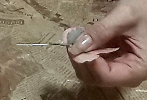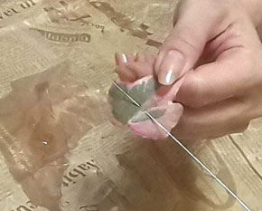 葉脈にワイヤーを通します。 (ワイヤー#24を使用) |