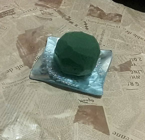 コケ玉風なのでお皿OKです。 こちらはガラス製の装花用のお皿です。