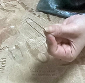太めのワイヤーを5㎝ぐらいにカットし、Uピン状に曲げて使います。 (ワイヤーは#20を使用) |