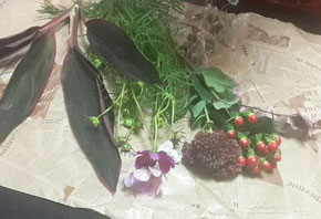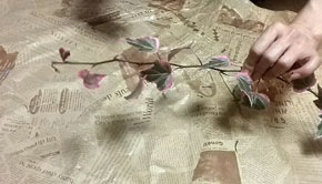 こちらはアイビー。 ピンク色に染めたものを使いました。 なければ普通のグリーンアイビーでも。 |