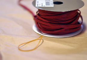 輪ゴムとカラーラフィアです。 ラフィアはリボンなどでもOKです。麻ヒモなどでも◎ |