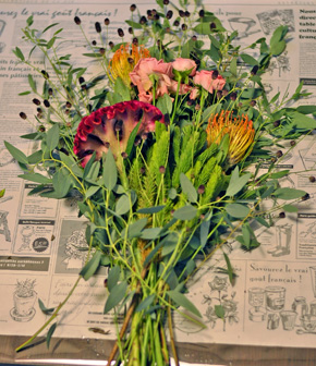 全部重ねたら、バインディング部分より下の葉っぱなどは取り除き、輪ゴムでしっかり束ねます |