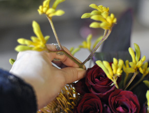 カンガルーポーという花材です。 カンガルーの前足のような形からついた名前だそうです。