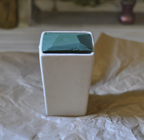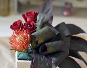 特徴のある面白い花材は飛び出すようなイメージでアレンジします。 埋めてしまわないように。 |